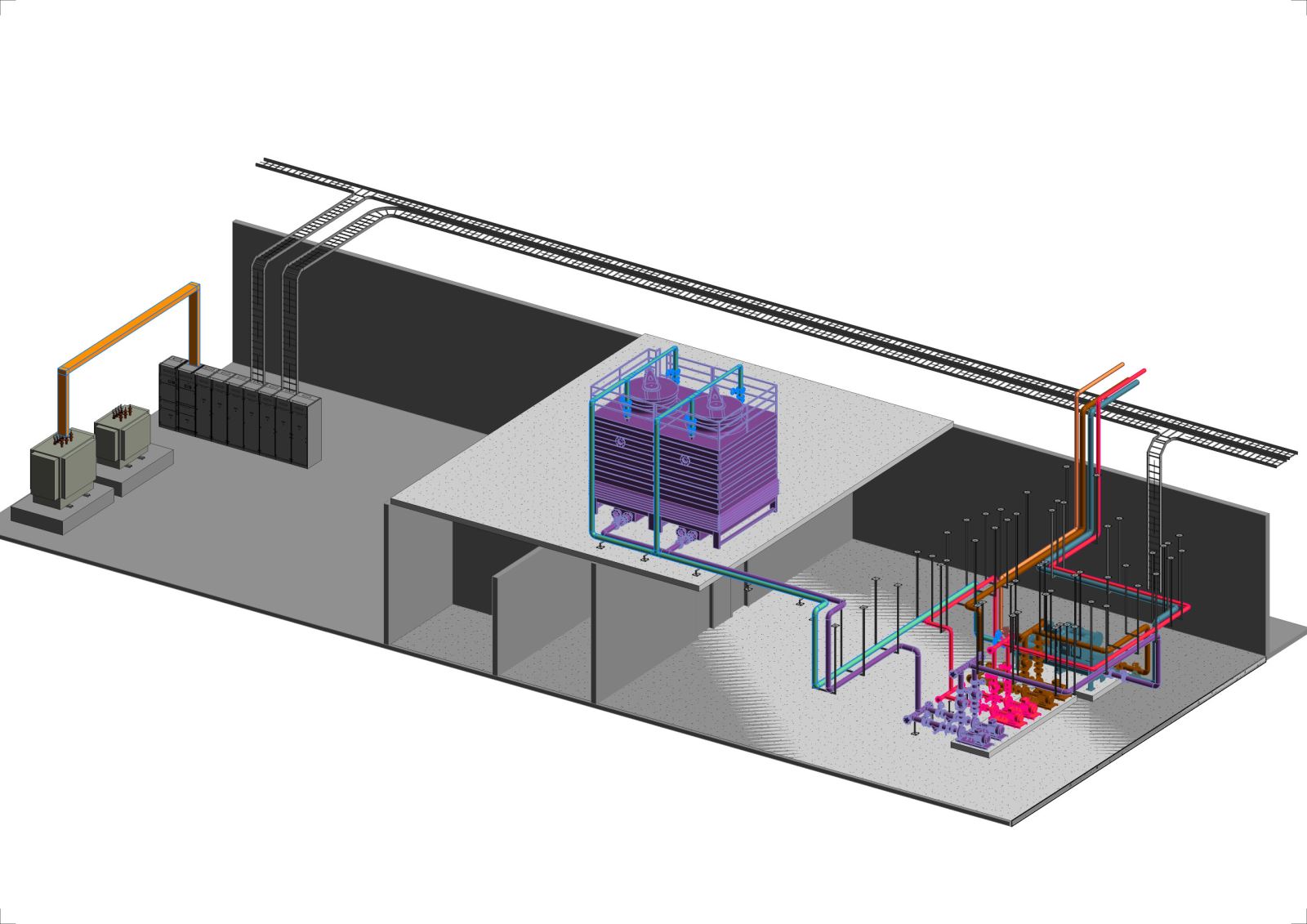 + Các tủ trung thế, đường dây trung thế, máy biến áp, các tủ đóng cắt chính MSB